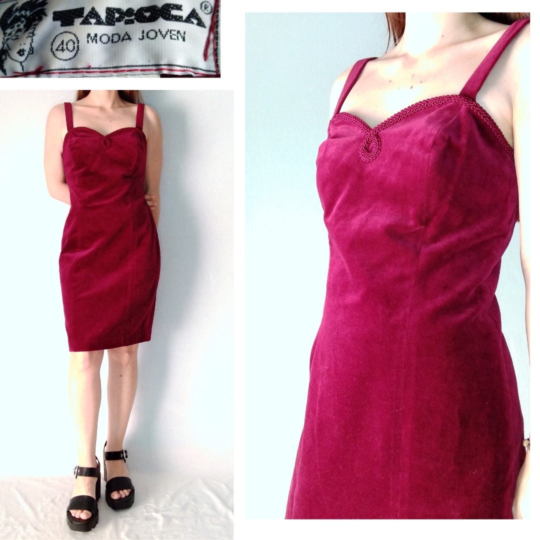Vintage VELVET party minidress BURGUNDY made in spain sweetheart neck